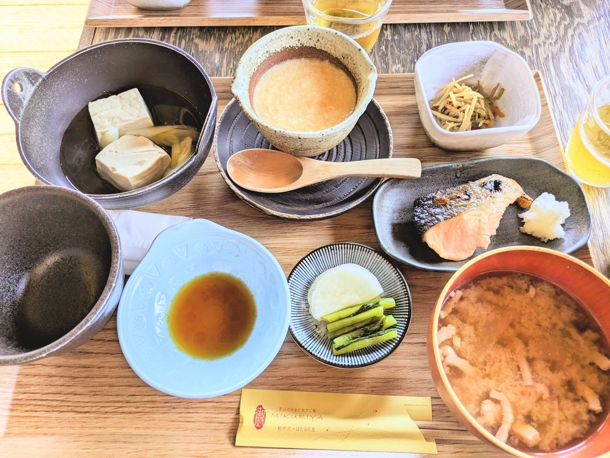 朝食をあえて外で食べてみてもいいでしょう。写真は ホテルハーヴェスト軽井沢から車で5分の場所にある御厨です。