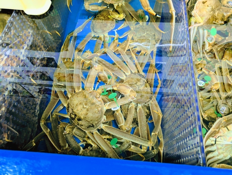 間人(たいざ)ガニって知ってますか?海の京都と呼ばれる 京都府の日本海側の中でも 間人(たいざ)と呼ばれる地域で水揚げされた松葉ガニのことを指します。目印はカニの腕に付けられた緑のタグです。これが 間人ガニの証となります。