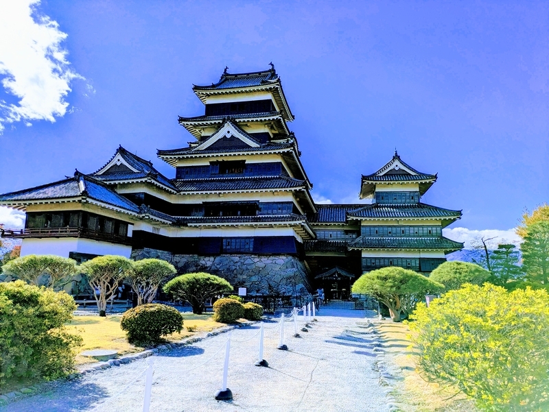 食事を済ませた後は 石井味噌から車で10分ほど。松本市の中心部にある 国宝 松本城を散策します。日本国内に国宝の城は 姫路城・彦根城・犬山城・松江城 そして 今回訪問した信州松本城の5つしかない貴重なものです。国内には 江戸時代以前から残る現存天守が12ありますが 松本城は 大天守・小天守・櫓などが連結していて防衛力の高い城として評価されました。