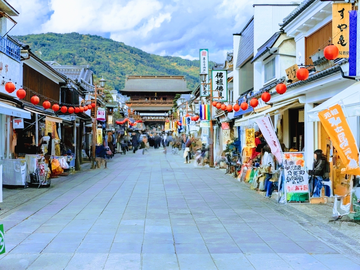 善光寺の本堂まで続く参道両脇には 様々な店舗が並んでいて それぞれの お店を覗くのも楽しみです。