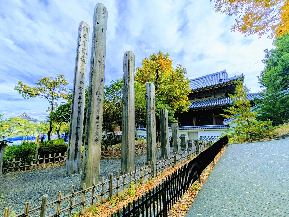 善光寺と言えば 7年に1度(数え年なので実際は6年に1度)の御開帳でも知られています。その時に 前立本尊と結ばれるのが回向柱です。本堂の西側に その過去の回向柱が埋められている場所があります。一番手前に 直近の回向柱が埋められているのですが その回向柱に触れると 今までの悪い行いをリセットできるのだとか…。