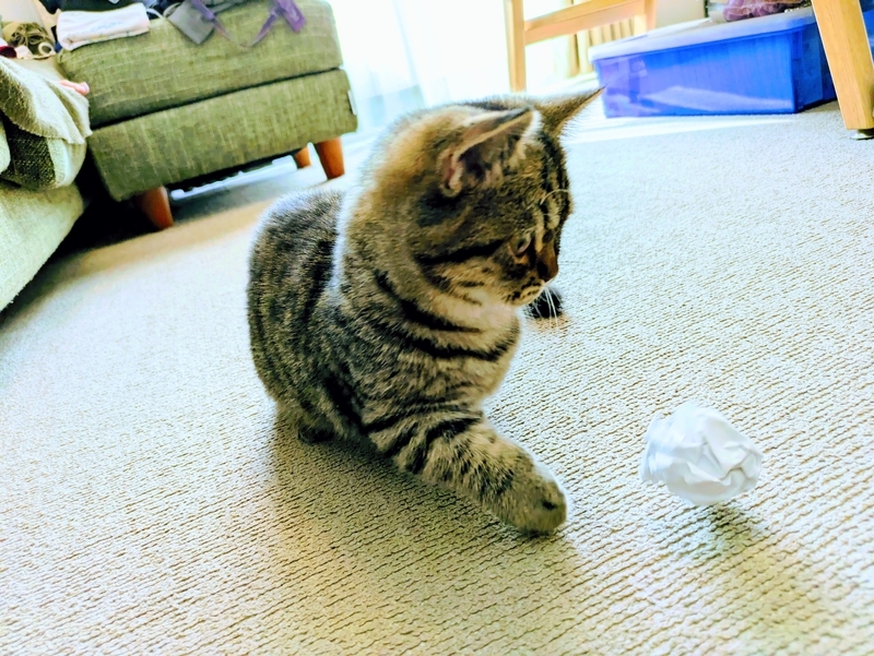 最近 手にじゃれつきながら 甘噛みをするケースが増えてきました。甘噛みなので 本当に噛むつもりは無いのですが…それでも まだ子猫なので 噛み具合の調整ができないらしく 先日は 擦り傷ができてしまいました。